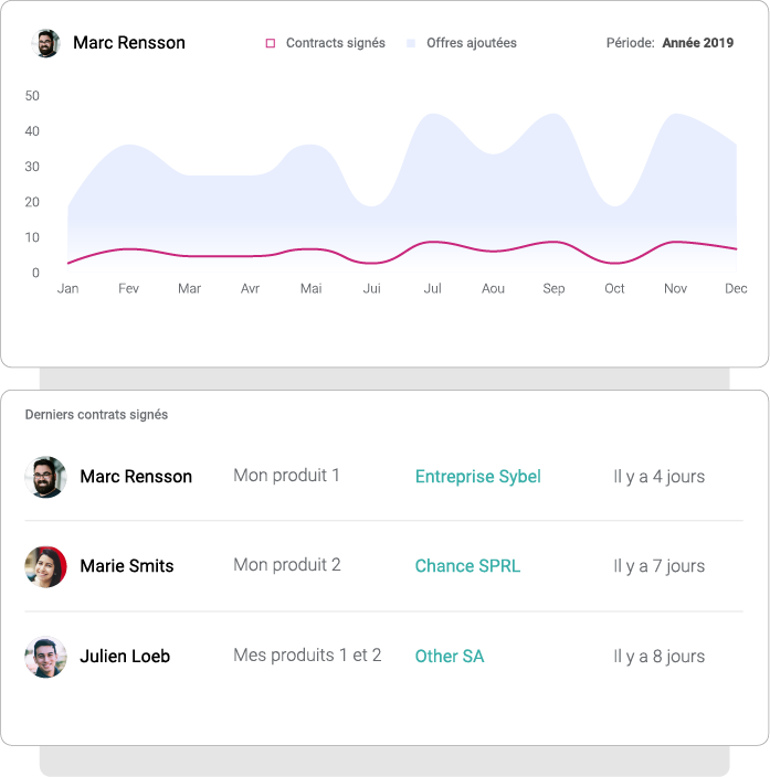 Nos cartes vous permettent une meilleure vue d’ensemble. Grace à elles, vous ferez aisément la connexion entre les organisations les contacts et les offres.
